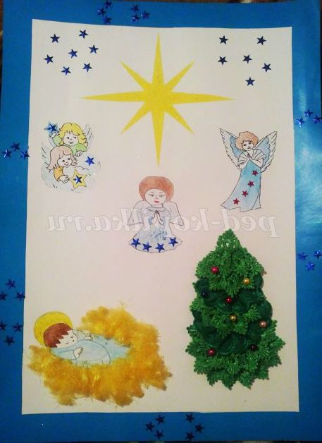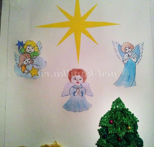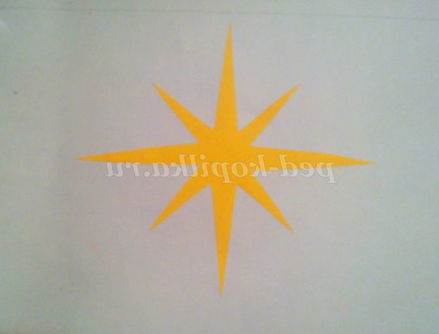 На кольоровому папері жовтого кольору малюємо по шаблону і вирізаємо Віфлеємську зірку.