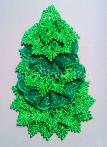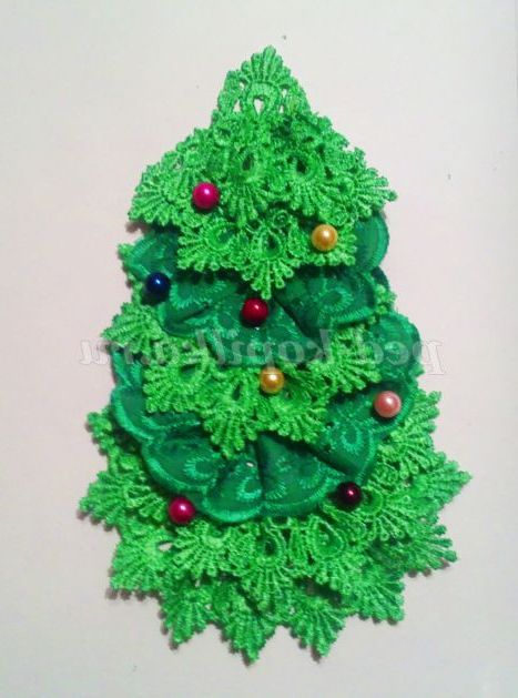 З шматочка ажурною тасьми вирізаємо і приклеюємо верхівку ялинки.