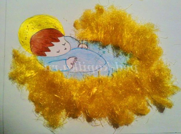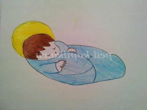 Малювання і розфарбовування немовляти Ісуса в пелюшках.