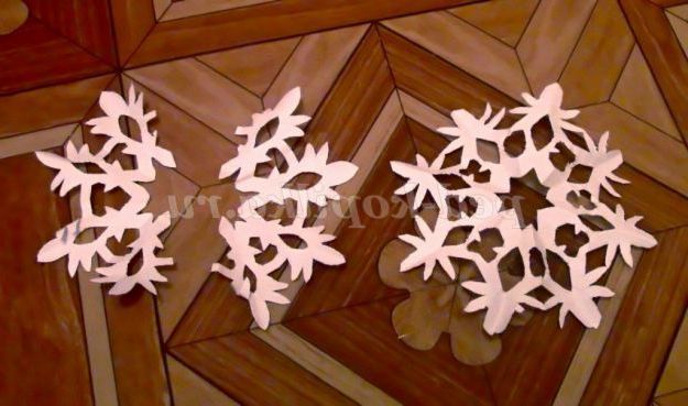 6. З аркуша білого паперу вирізаємо дві сніжинки, які потім розрізаємо навпіл