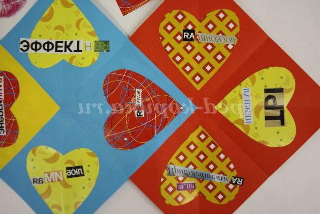 7) Сердечка можна вирізати з журналу. Навколо сердець пишеться побажання або визнання.