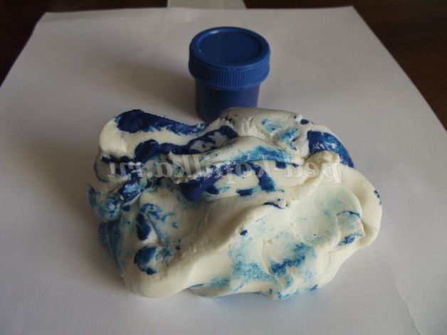 В більшу частину маси додаємо гуаш синього кольору (після підсихання виріб стає світліше), це буде наша підкова.