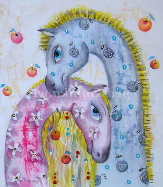 І я подумала, що творчі люди обов'язково зроблять подарунок своїм близьким своїми руками. Сподіваюся картинки допоможуть. Конячки виконані в техніці Батік-розпис по тканині. Я захоплена цією технікою і намагаюся передати своє захоплення і розуміння краси , гармонії дітям. Зробила добірку картинок для Вас . А поки подивіться картинки - Кінь, символ 2014 року, які стануть чудовими подарунками до новорічних свят.