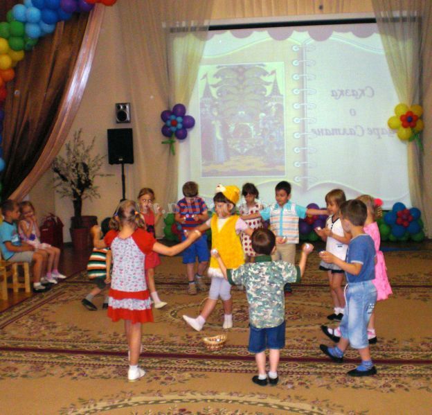 Вихователь: Хлопці, а ви любите казки? (так). Сьогодні наше свято буде присвячений не всім казкам, а казкам, які написав О.с.пушкін.