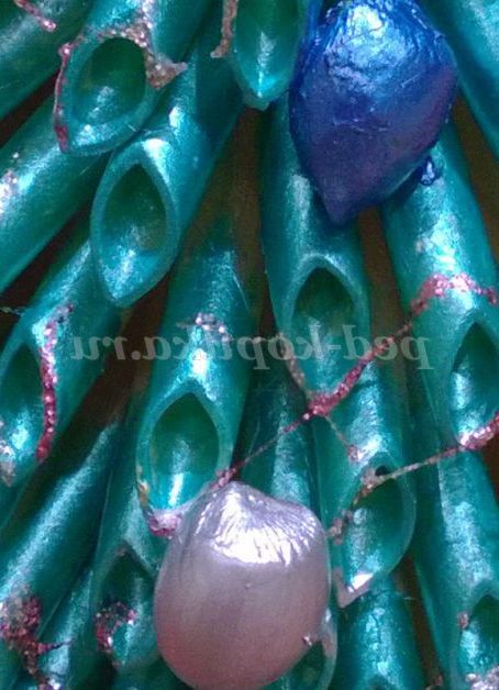 Макарони приклеювала по-колу в шаховому порядку, близько один до одного, щоб не було видно конуса-підстави.