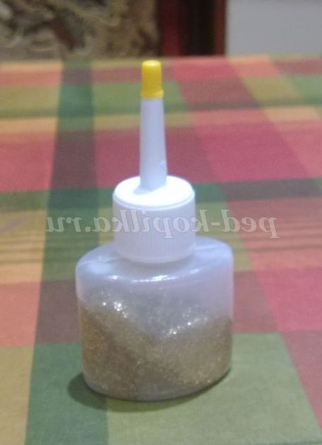 Нанесла на ялинку «мішуру» глітером з золотистими блискітками.
