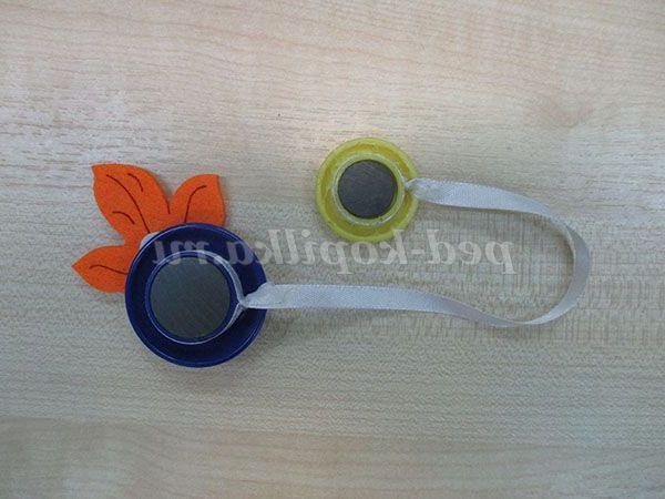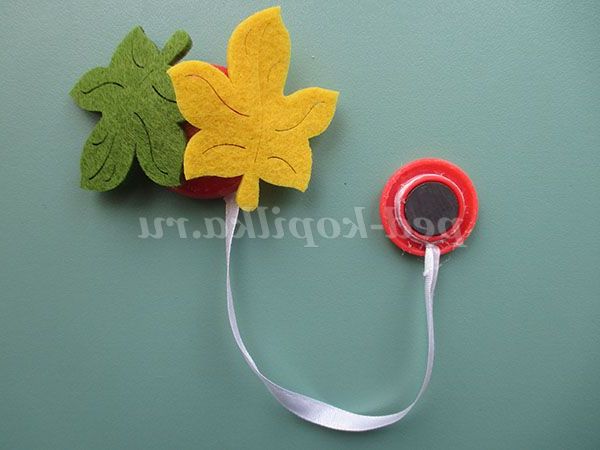 9. Можна обтягнути магніти поролоном, а зверху красивим матеріалом, оформити намистинками, джгутиками, паєтками, бісером, приклеїти бумбончики і т.д. за вашим бажанням.