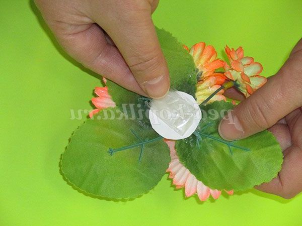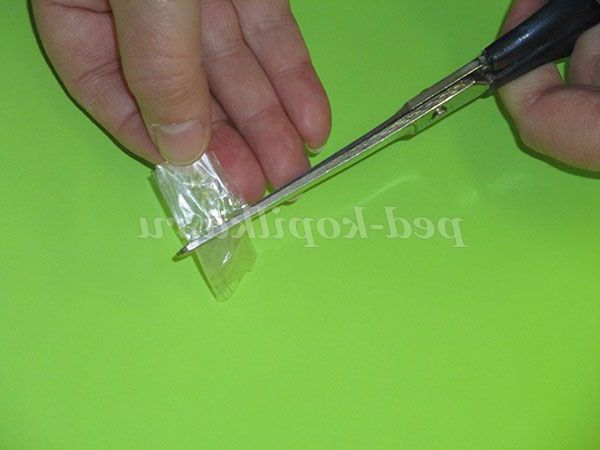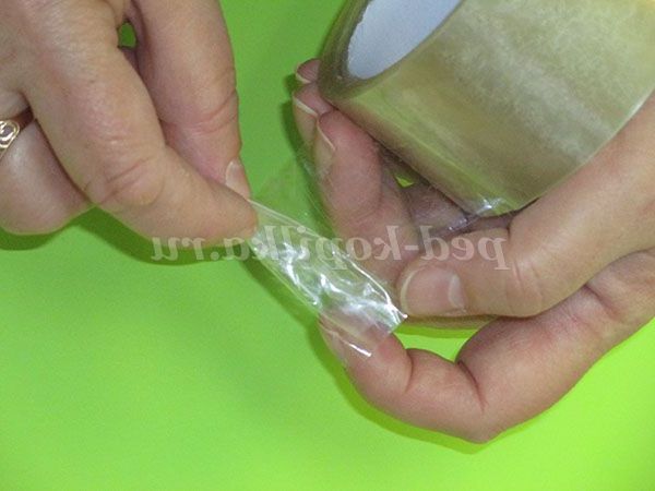 6. Декор приклеюємо на подвійний скотч, а я роблю так: звичайний скотч закручуємо в трубочку так, щоб липка сторона була зверху (фото №7).