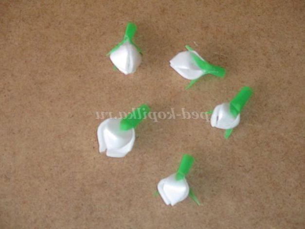 25. Приклеюємо листочки до бутона, прикриваючи кінець трубочки, і до решти порожнім кінцях стирчать гілочок по кілька штук в одному місці (як би купкою).