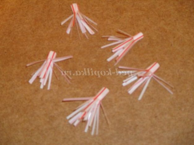 20. Один кінець трубочки розрізаємо на 3 частини, заостряем кожну частину і відгинаємо в сторону - чашолистки для бутонів готові.