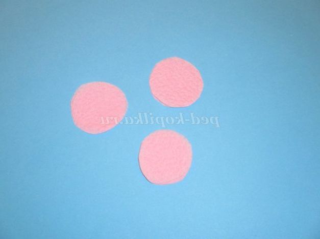 8. Тепер «окрасим» пелюстки всередині в рожевий колір. Виріжемо кружечки з рожевих серветок. Розмір визначаємо по денця чашечки. Точність не потрібна, можна трохи більше, можна трохи менше. Смужку від серветок складаємо гармошкою і з отриманого квадратика вирізаємо коло.