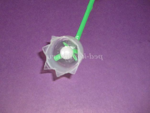 8. Надрізаний на 4 частини кінець трубочки вставляємо в отвір дзвіночка і відгинаємо надрізи, щоб вони розкрилися.