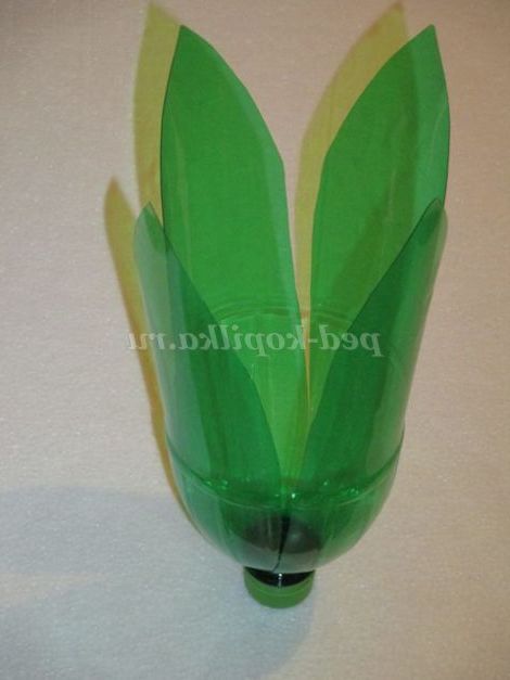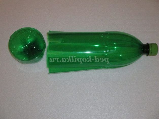 12. Робимо листя. Для цього беремо пластмасову пляшку зеленого кольору і відрізаємо дно пляшки.