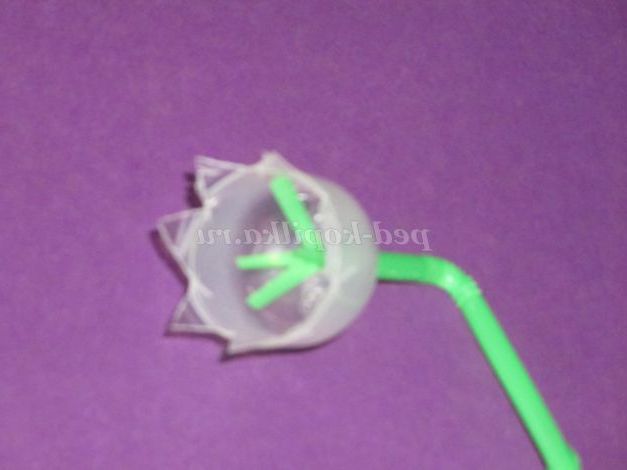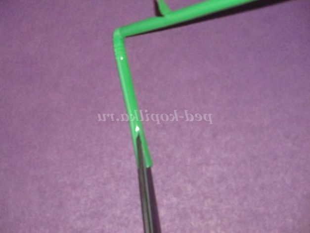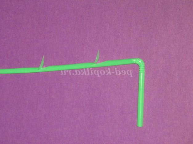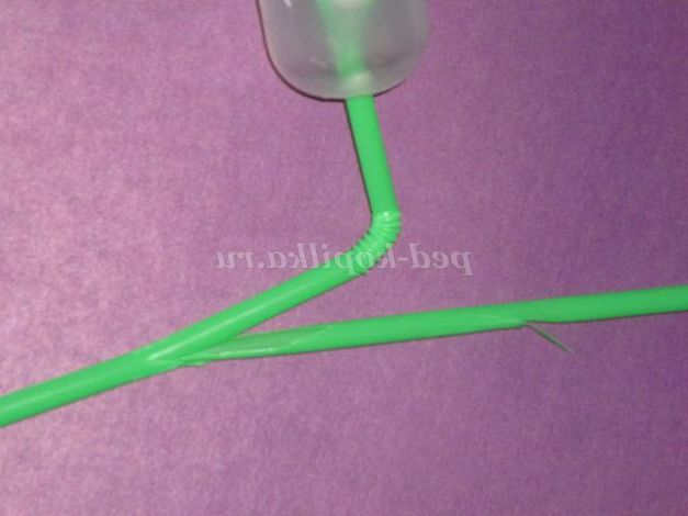 10. Вставляємо зрізану навскоси частина стеблинки в невеликий надріз на інший трубочці до упору (тримається міцно і не вилітає).