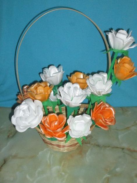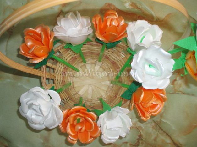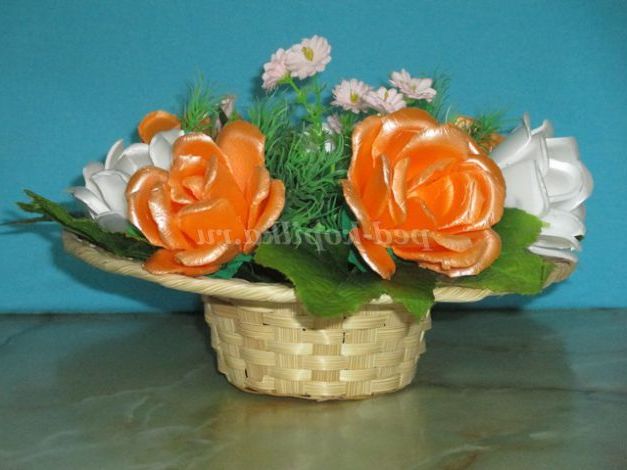 Виготовлення троянди з упаковок від яєць і оформлення квітами кошика