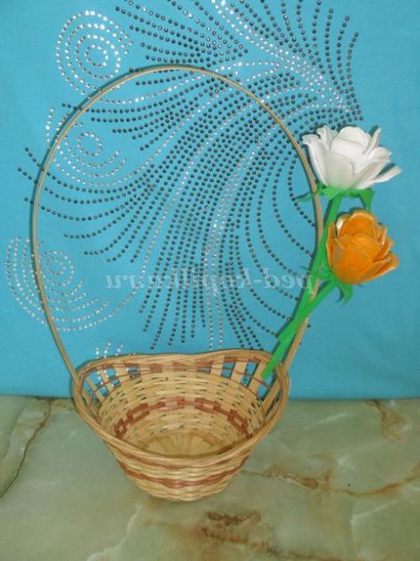 11.Меняем георгіївську стрічку на святковий бантик. Таку кошик з трояндами можна подарувати на будь-яке торжество.