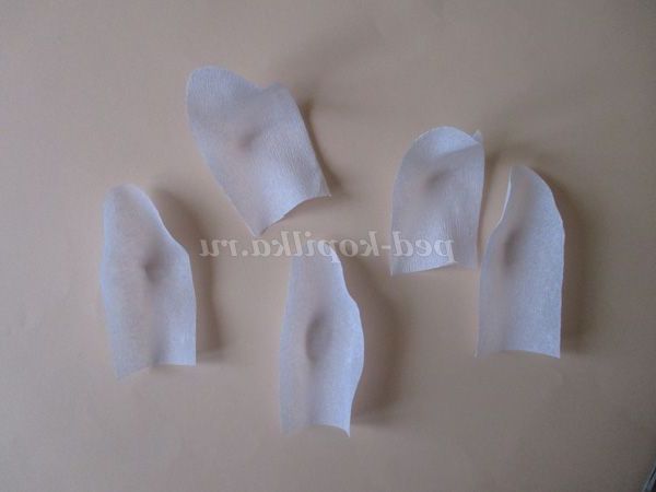 4.Растягиваем трохи пальцями середину прямокутників в сторони, виходять пелюстки.