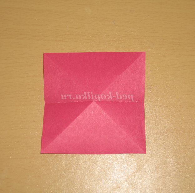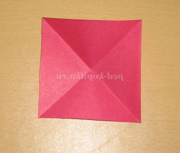 1. Складаємо малиновий квадрат по діагоналях. Розгортаємо.