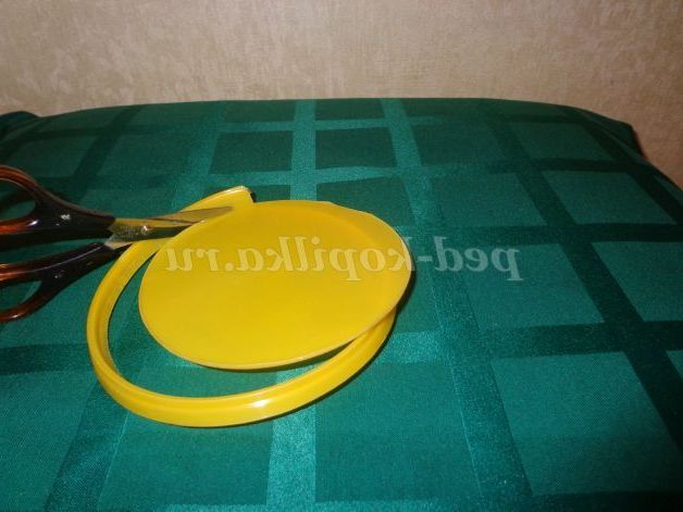 Беремо кришку з майонезного відерця, зрізаємо обідок.