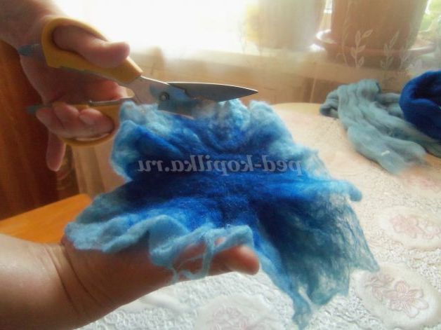 3. Додаємо темно-синього кольору. Висмикуємо пучки вовни меншого розміру.