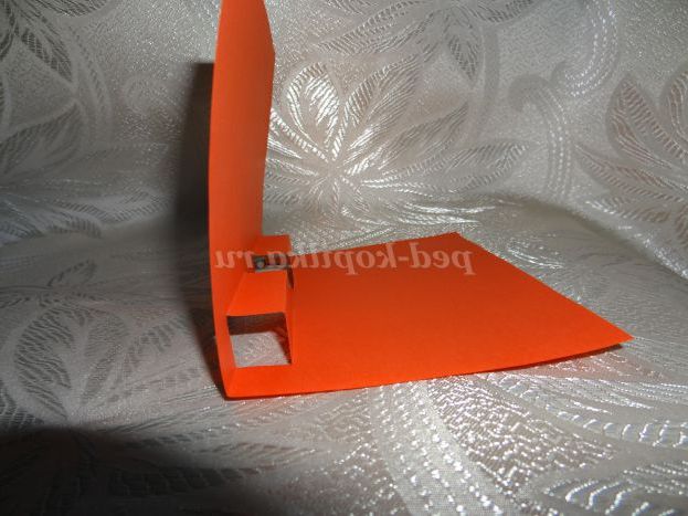 Підготовлений лист червоного паперу приклеюємо на білий картон, попередньо складений навпіл (Фото 13)