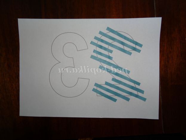 На цифру 2 приклеїмо сині смужки - вийшла цифра в тільняшці (Фото 5)