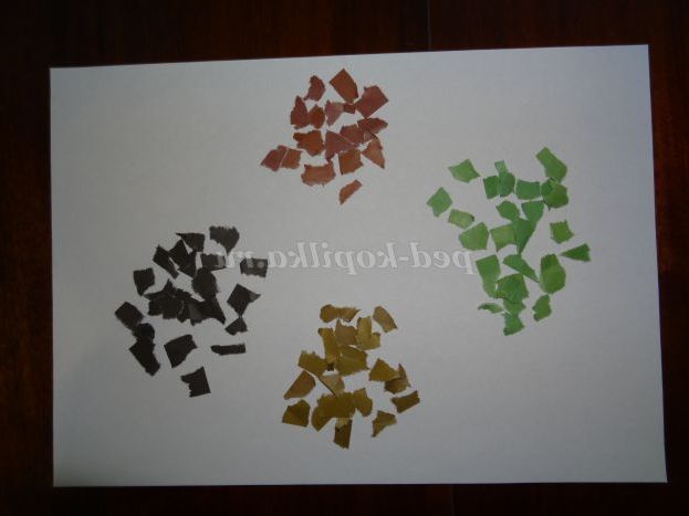 Зелену, коричневу, пісочну і чорну папір нарвем дрібними шматочками (Фото 3)