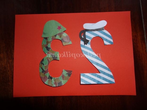 До отриманої заготівлі приклеюємо цифри 2 і 3, а так само напис «Вітаю!», «З святом!» (або будь-яку за бажанням) (Фото 14,15)