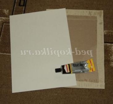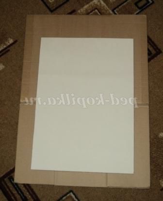 Робимо основу з щільного пакувального картону. Приклеюємо на картон аркуш формату А3 і краю картону обрізаємо