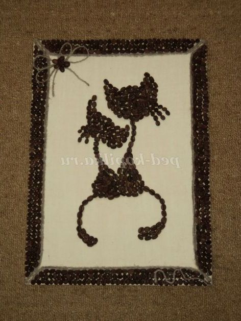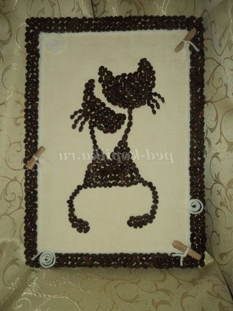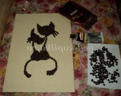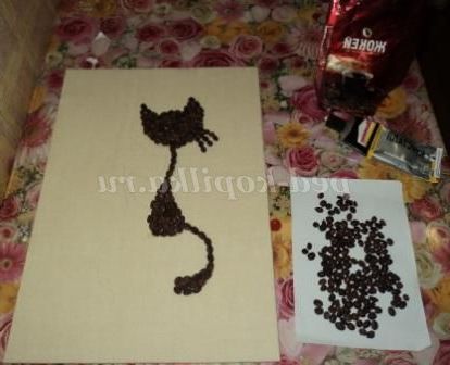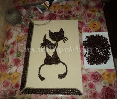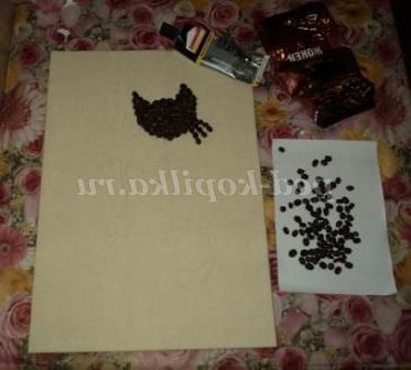 Тепер найприємніша частина: починаємо клеїти кавові зерна. Для цього невелику ділянку намажемо клеєм, зерна клеїмо плоскою стороною вгору.