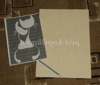 Перевертаємо роботу на лицьову сторону, переводимо на тканину малюнок котів.