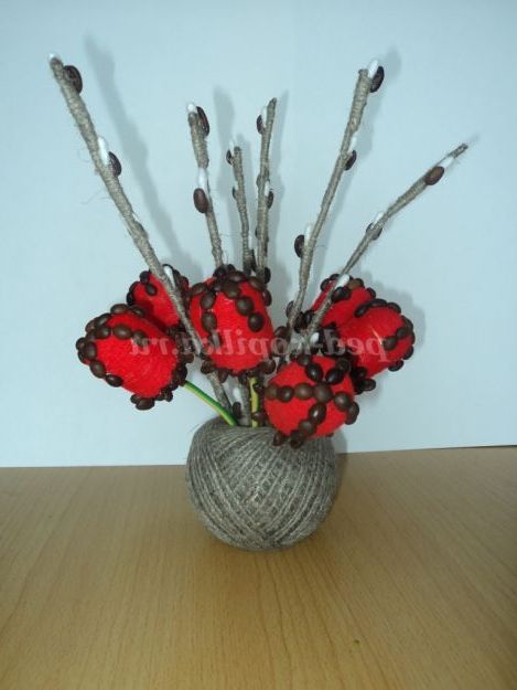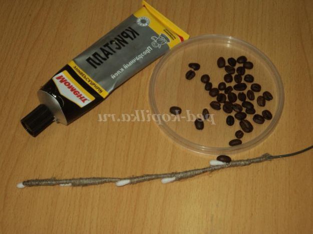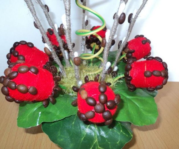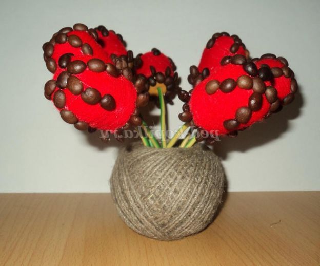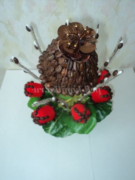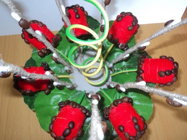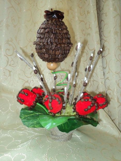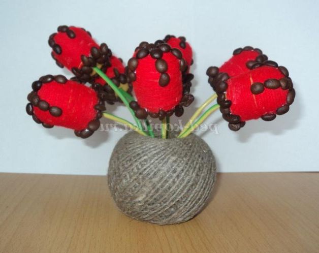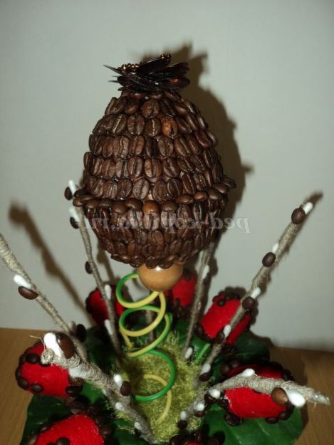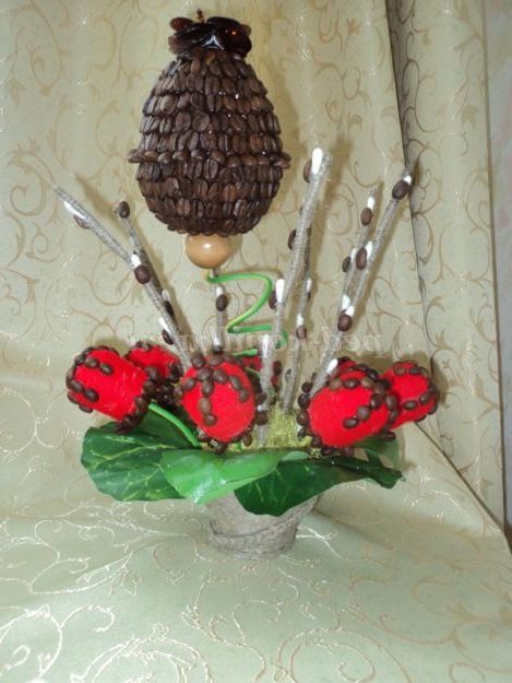 Вгору квітки теж прикрашаємо кавовими зернами.
