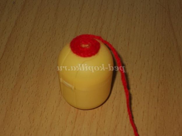 Робимо квіти. Яйце від кіндера обклеюємо ниткою по колу.