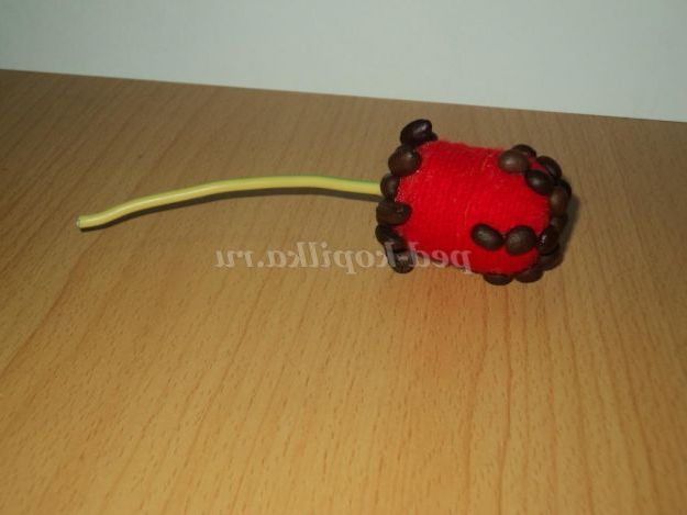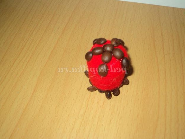 Біля ватною головки приклеюємо по одному кавового зернятка.