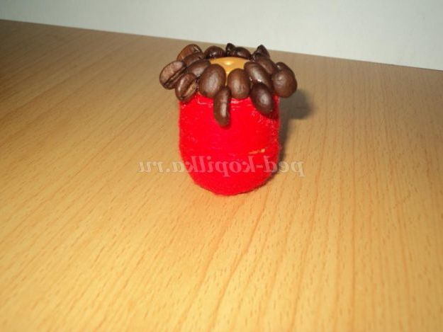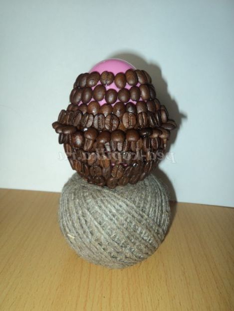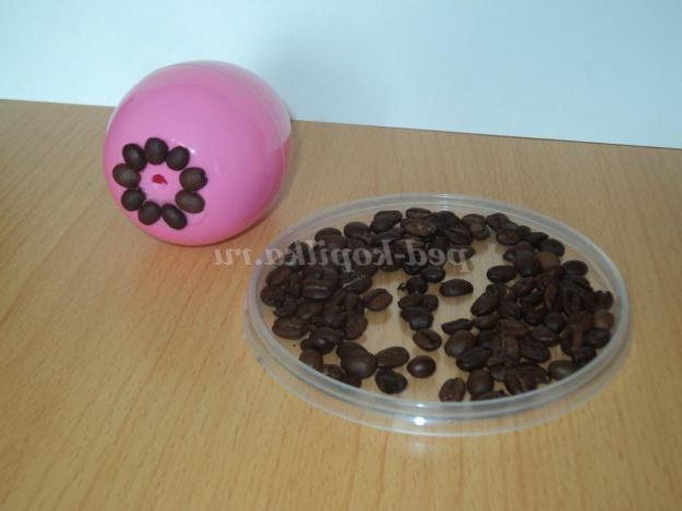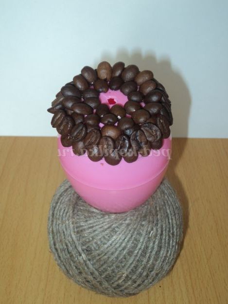 На дно яйця по колу клею кавові зерна плоскою стороною вниз.