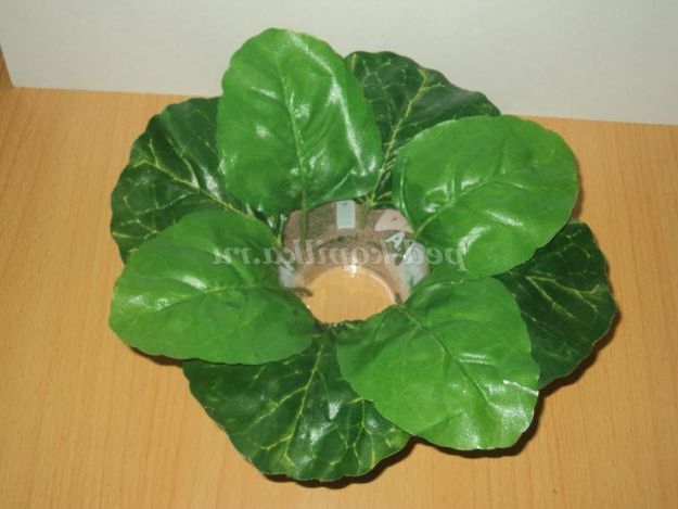 Укладаємо травичку на дно горщика, закриваючи гіпсову основу. Краї травички фіксуємо клеєм.