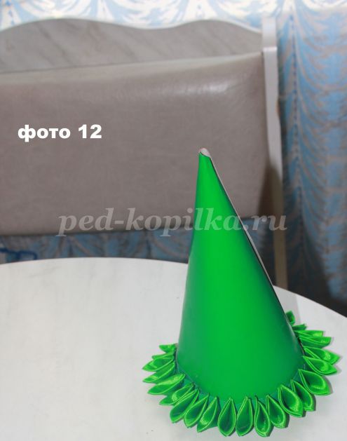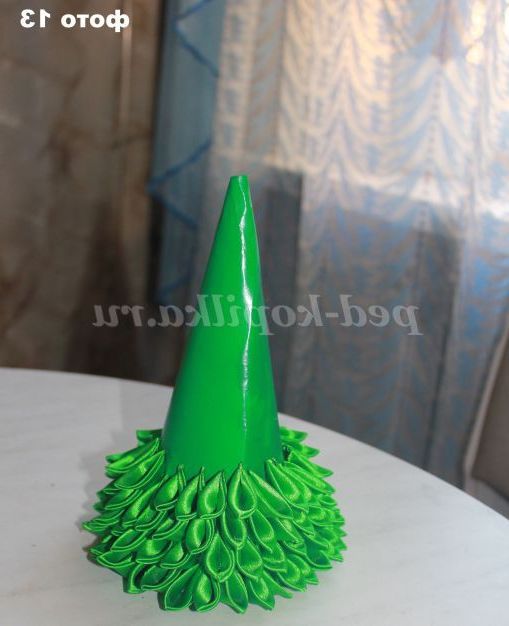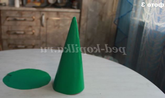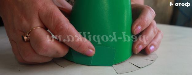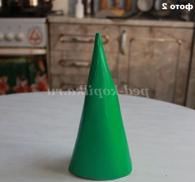 Із зеленого картону потрібно звернути конус і склеїти клеєм лінію розрізу