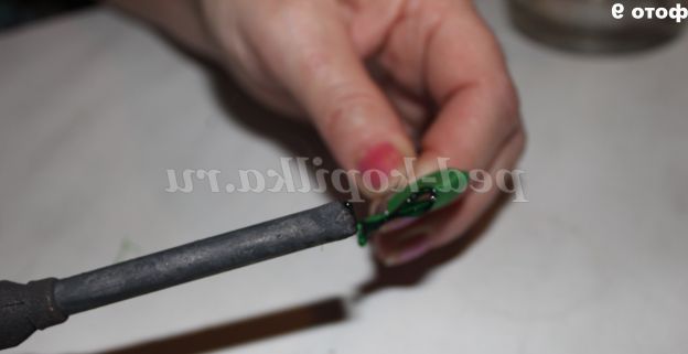 Нижній край підрізаємо, затискаємо пінцетом і оплавляем паяльником