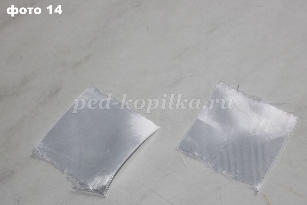 Відрізаємо від білої стрічки квадрат 5*5 см складаємо його навпіл складаємо його навпіл