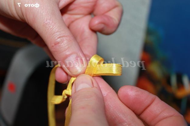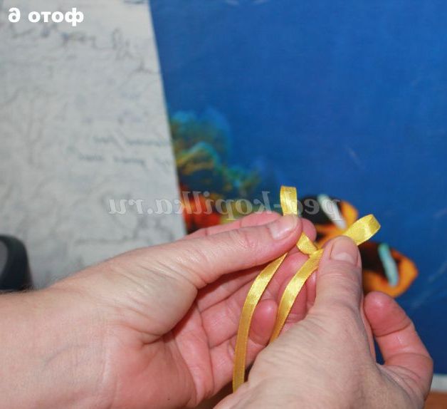 Беремо 2 стрічки шириною 0,6 см завдовжки 1 метр пов'язуємо їх вузликом