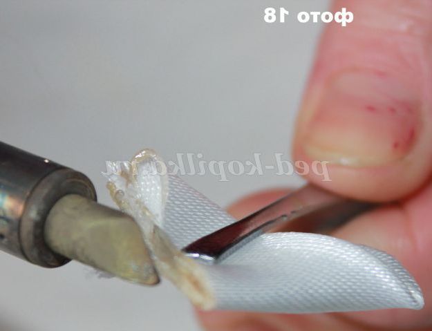 Затискаємо пінцетом і опаиваем нижній край електричним паяльником