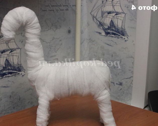 Потім беремо бинт медичний і починаємо обмотувати, щоб потім синтепон не ліз з усіх дірочок. і заодно надаючи вже остаточно форму. У результаті повинна вийде ось таке чудо
