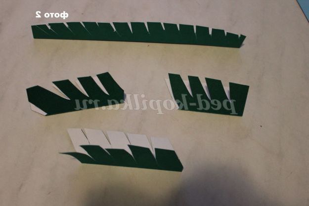 • З зеленого паперу виріжте смужки 6x15 див. Складіть смужки навпіл.