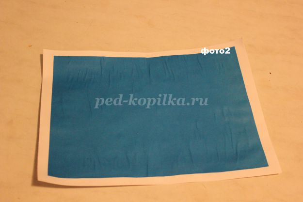 Візьміть білу папір розміром 16х24 див. Приклеїмо на неї синій папір по центральному згину.