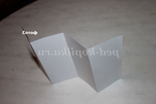 Тепер беремо аркуш білого паперу розміром 10 на 20 см, складемо навпіл, і отогнем краю до центрального згину, виходить невелика гармошка.