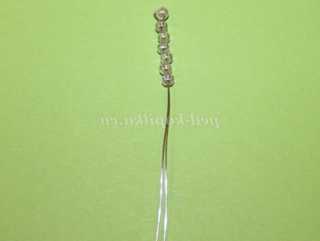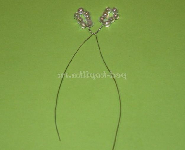 Відгинаємо один кінець дроту, нанизуємо сім намистин, згинаємо дріт навпіл і робимо закрутку за годинниковою стрілкою на 4 обороту.