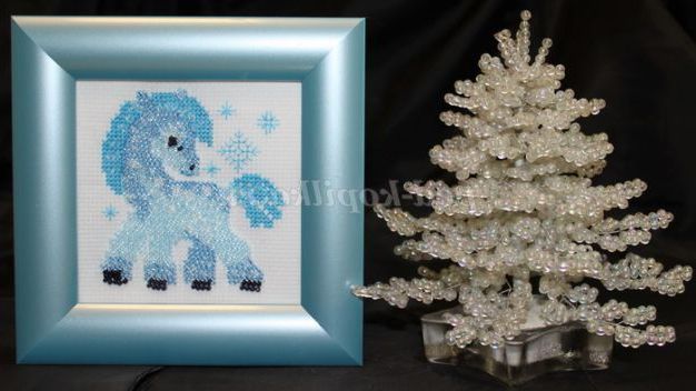 Як ви переконалися, зробити ялинку дуже легко і просто. Моя ялинка стоїть поряд з вишивкою «Крижана конячка», виконаної з бісеру.
