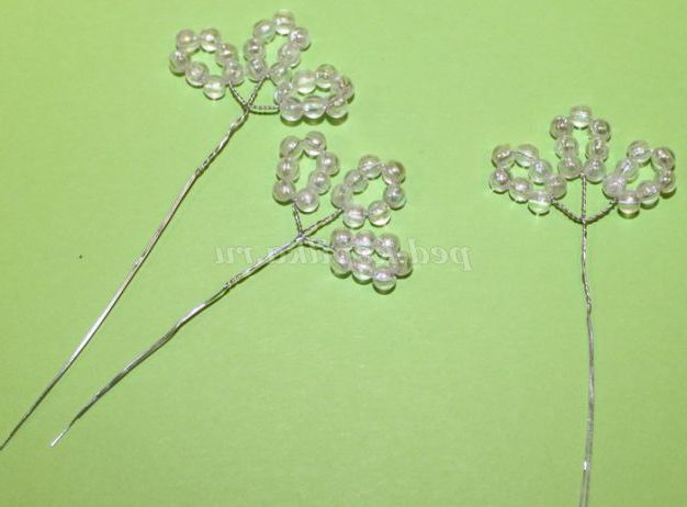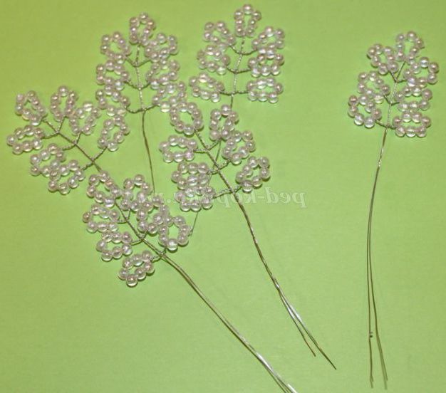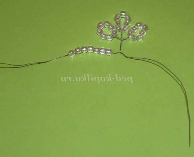 Таким способом робимо чотири гілочки по п'ять намистин.