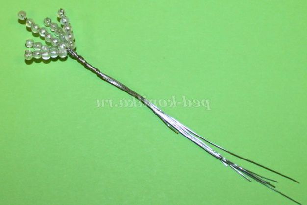 Наступні шість намистин нанизуємо на обидва кінці дроту. Це буде центральна гілочка верхівки.