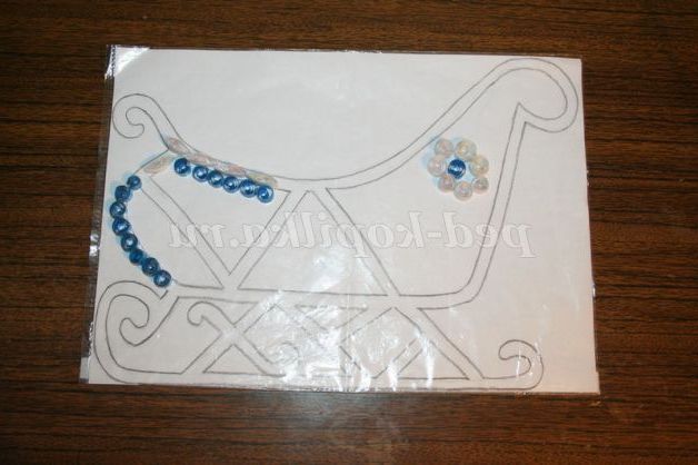 На аркуші паперу А4 намалювати приблизну бічну деталь санок. Листок вкласти в файл, щоб деталі не приклеїлися до паперу.